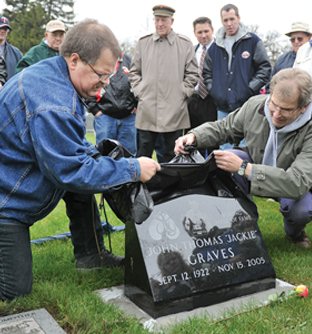 Photo and story of unveiling of Jackie's shiny new tombstone at