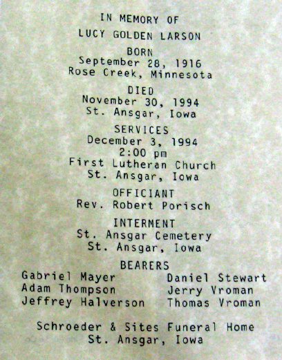 Schroeder & Sites Funeral Home, St. Ansgar, is in charge of arrangements