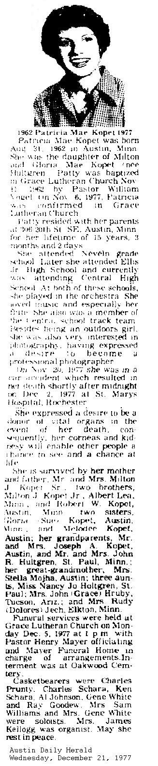 Patricia Mae Kopet 1962-1977