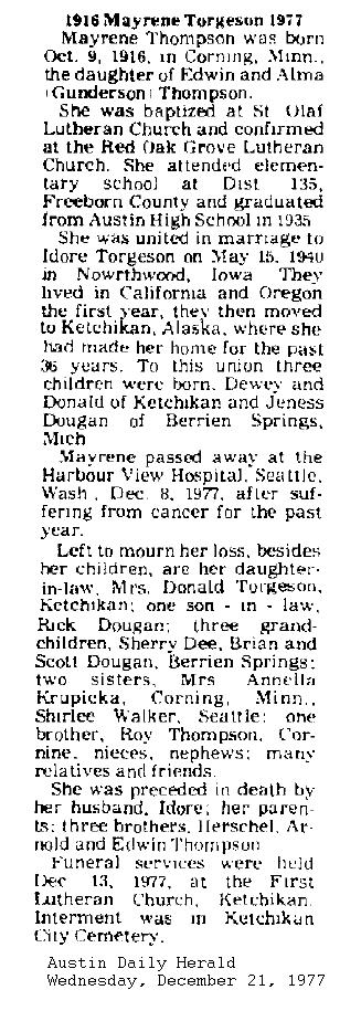Mayrene (Thompson) Torgeson 1916-1977