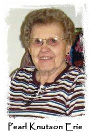 She is survived by her children, Marlys (Phillip) Rugg, Dennis (Karen) Erie, both of Rochester, and Janice (John) McDaniel of Washington, Iowa; seven grandchildren, Kevin (Deanna) Rugg, Keith (Kathleen Colleran) Rugg, Karen Ritchie and friend Leroy Steinman, Danielle (Dennis) Mulvihill, Amy (Eric) Thompson, Michelle Kennedy and Catherine (Jamie) Beauchamp; 14 great-grandchildren and one great-great-grandson. Pearl is also survived by two siblings, Vernon (Verna) Knutson of Rochester and Florence Thompson of North Charleston, S.C.; and a special friend, Walter Underdahl of Adams.