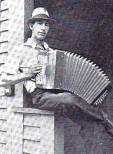 Here is a picture that appeared in the SQUEAL in a happier day when Ben Aulwes was alive and well and able to play the accordion which he very much liked to do. Ben died last month following by a few hours his falling into the beef fats melter through the charging hole on the third floor of the beef-house.